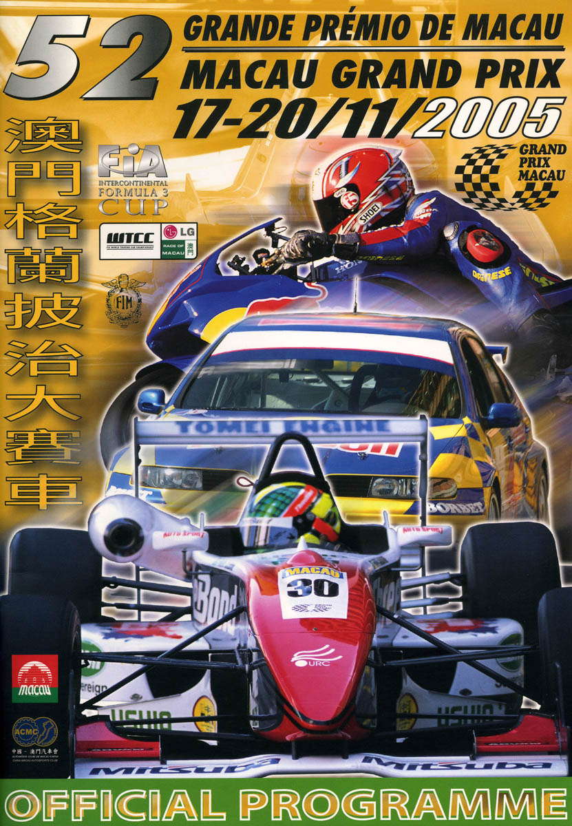 20.11.2005 - Macau FIA Formula 3 Intercontinental Cup Streckenskizze Programmheft Starterliste Alle Ergebnisse: Vorbericht Nennungsliste Qualifikationsrennen Ergebnis freies Training 1 Bericht freies Training 1 Ergebnis Zeittraining 1 Original Zeitnahme Bericht Zeittraining 1 Ergebnis freies Training 2 Ergebnis Zeittraining 2 Original Zeitnahme Gesamtergebnis Zeittraining 1+2 Original Zeitnahme Bericht Zeittraining Ergebnis Warm Up 1 Startaufstellung Qualifikationsrennen Ergebnis Qualifikationsrennen Original Zeitnahme Rundentabelle Qualifikationsrennen Bericht Qualifikationsrennen Nennungsliste Finalrennen Ergebnis Warm Up 2 Startaufstellung Finalrennen Ergebnis Finalrennen Original Zeitnahme Rundentabelle Finalrennen Bericht Finalrennen