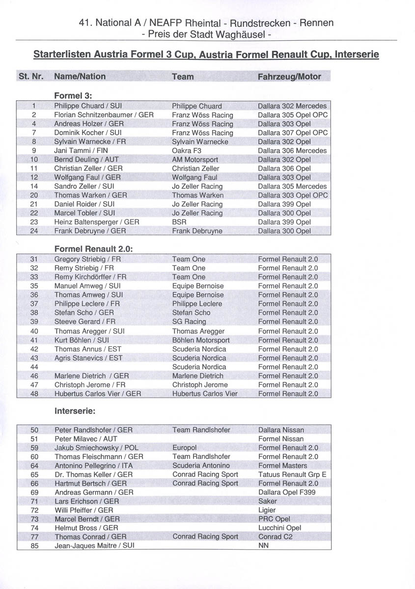 15.10.2011 - Hockenheim 13.+14.Lauf Austria Formel 3 Cup Streckenskizze Programmheft Starterliste Alle Ergebnisse: Nennungsliste Rennen 1 Ergebnis freies Training 1 Ergebnis freies Training 2 Ergebnis Zeittraining Original Zeitnahme Startaufstellung Rennen 1 Ergebnis Rennen 1 Original Zeitnahme Rundentabelle Rennen 1 Nennungsliste Rennen 2 Startaufstellung Rennen 2 Ergebnis Rennen 2 Original Zeitnahme Rundentabelle Rennen 2