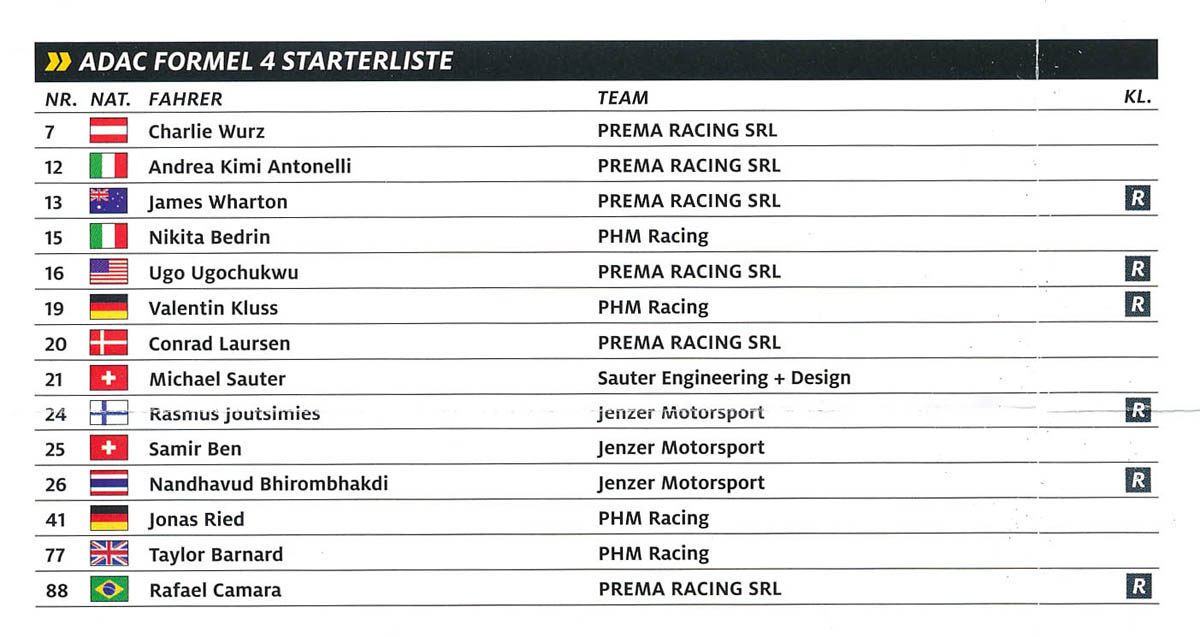 07.08.2022 - Nürburgring 10.+11.+12.Lauf ADAC Formel 4 Streckenskizze Programmheft Starterliste Alle Ergebnisse: Vorbericht Nennungsliste Ergebnis freies Training 1 Ergebnis freies Training 2 Ergebnis Zeittraining 1 Startaufstellung Rennen 1 Ergebnis Rennen 1 Rundentabelle Rennen 1 Bericht Rennen 1 Ergebnis Zeittraining 2 Startaufstellung Rennen 2 Ergebnis Rennen 2 Rundentabelle Rennen 2 Bericht Rennen 2 Startaufstellung Rennen 3 Ergebnis Rennen 3 Rundentabelle Rennen 3 Bericht Rennen 3