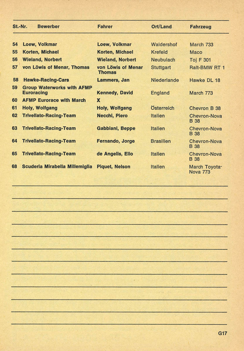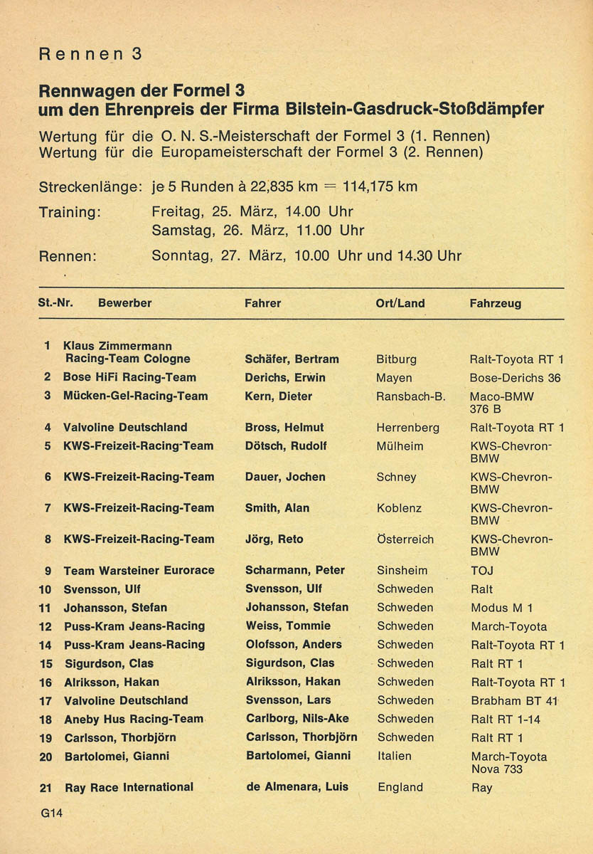 27.03.1977 - Nürburgring EM 2.Lauf FIA European Championship for Formula 3 Streckenskizze Programmheft Starterliste Alle Ergebnisse: Nennungsliste Ergebnis Zeittraining 1 Original Zeitnahme Ergebnis Zeittraining 2 Gesamtergebnis Zeittraining 1+2 Original Zeitnahme Startaufstellung Original Zeitnahme Ergebnis Rennen Original Zeitnahme