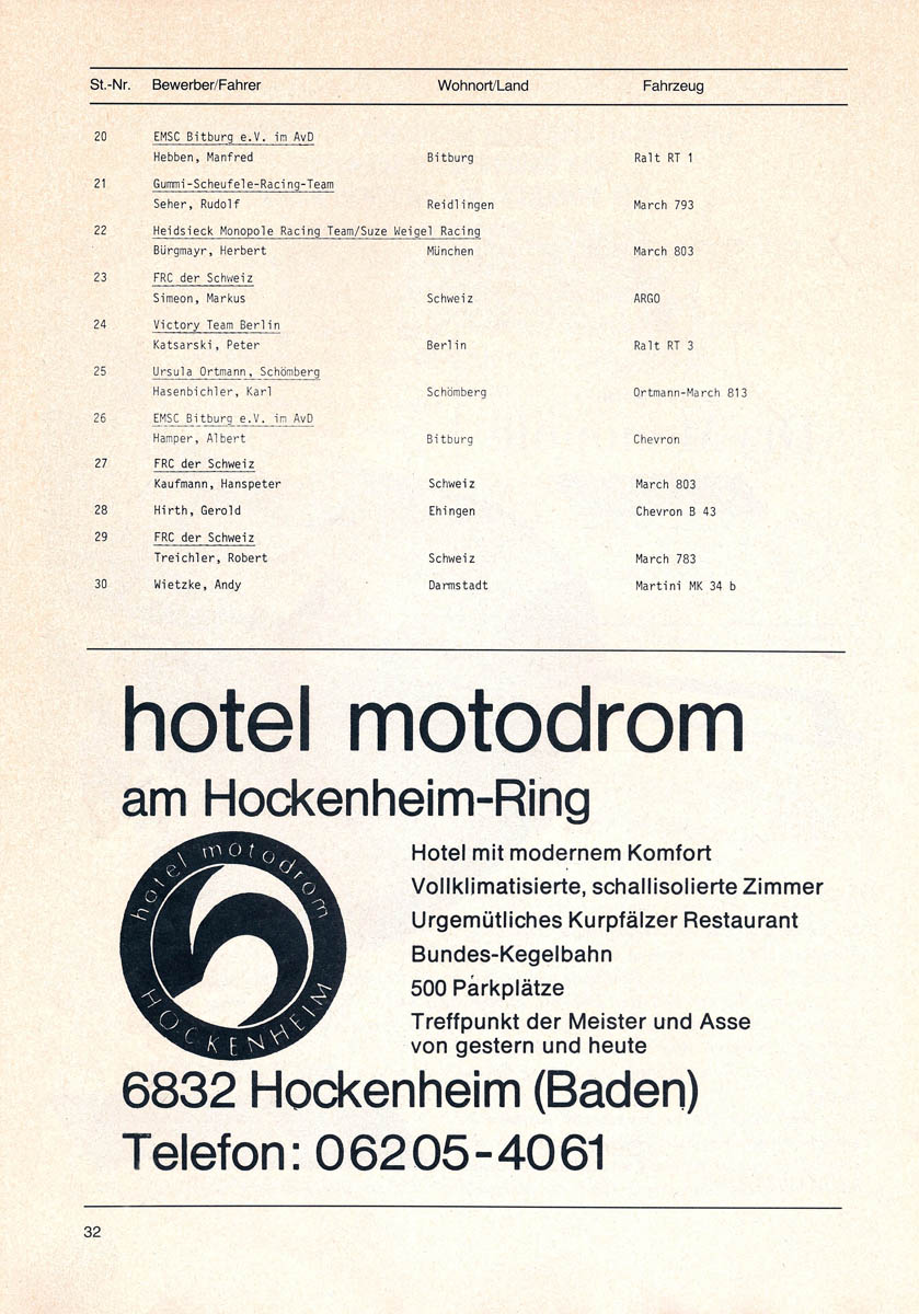06.09.1981 - Hockenheim 9.Lauf Deutsche Formel-3-Meisterschaft Streckenskizze Programmheft Starterliste Alle Ergebnisse: Nennungsliste Ergebnis Zeittraining 1 Original Zeitnahme Ergebnis Zeittraining 2 Gesamtergebnis Zeittraining 1+2 Original Zeitnahme Startaufstellung Original Zeitnahme Ergebnis Rennen Original Zeitnahme