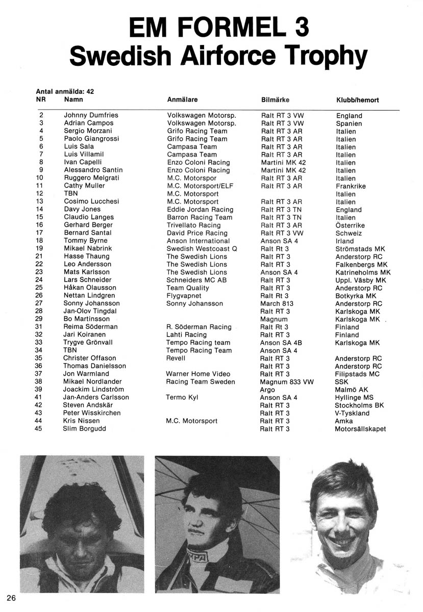 19.08.1984 - Knutstorp 11.Lauf FIA European Championship for Formula 3 Streckenskizze Programmheft Starterliste Alle Ergebnisse: Nennungsliste Ergebnis Zeittraining 1 Original Zeitnahme Ergebnis Zeittraining 2 Gesamtergebnis Zeittraining 1+2 Original Zeitnahme Startaufstellung Original Zeitnahme Ergebnis Rennen Original Zeitnahme
