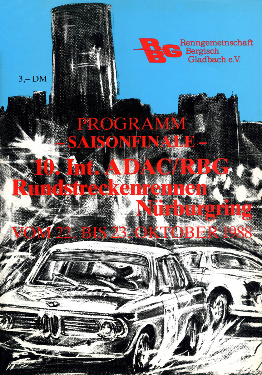 23.10.1988 - Nürburgring Streckenskizze Programmheft Starterliste Alle Ergebnisse: Nennungsliste Ergebnis Zeittraining 1 Original Zeitnahme Ergebnis Zeittraining 2 Gesamtergebnis Zeittraining 1+2 Original Zeitnahme Startaufstellung Ergebnis Rennen Original Zeitnahme