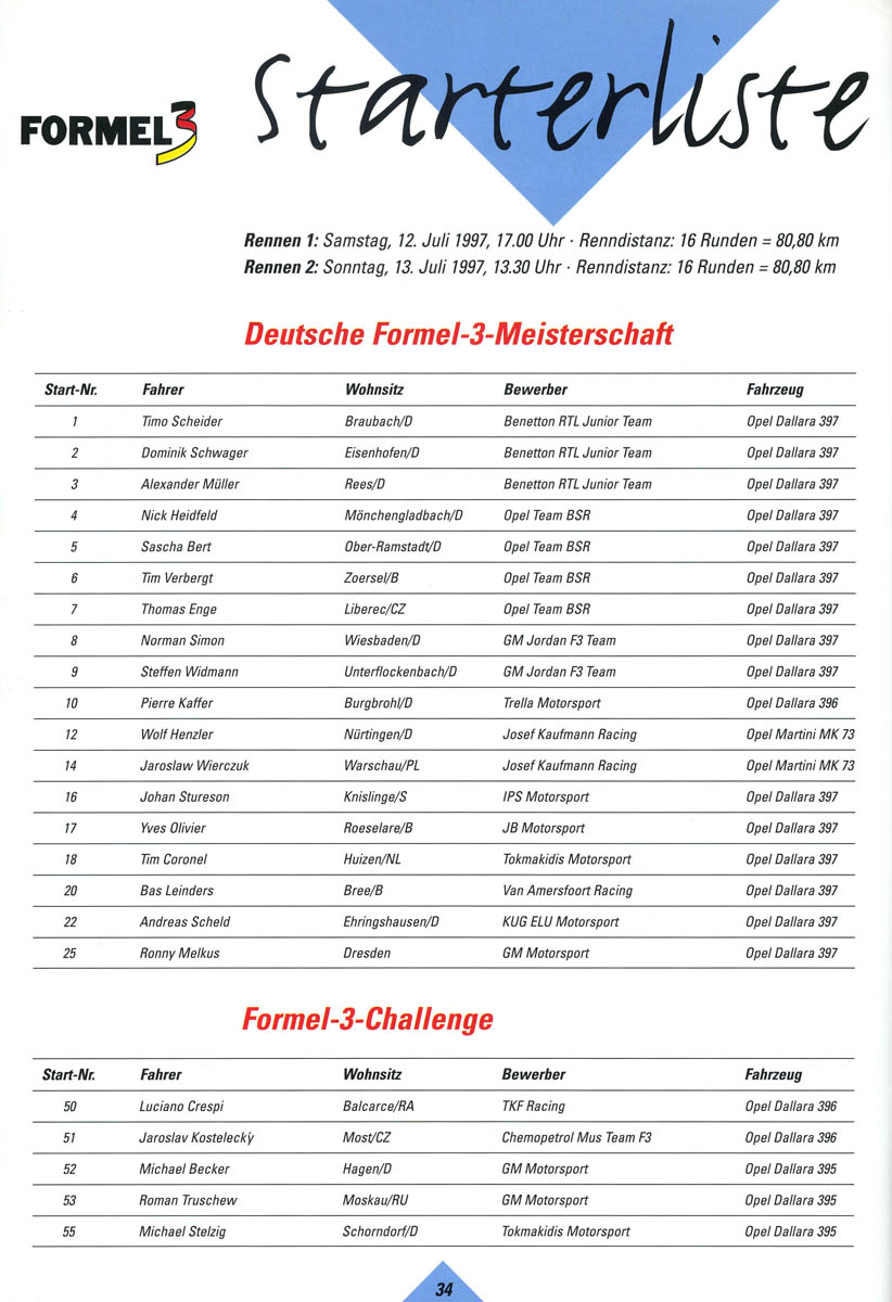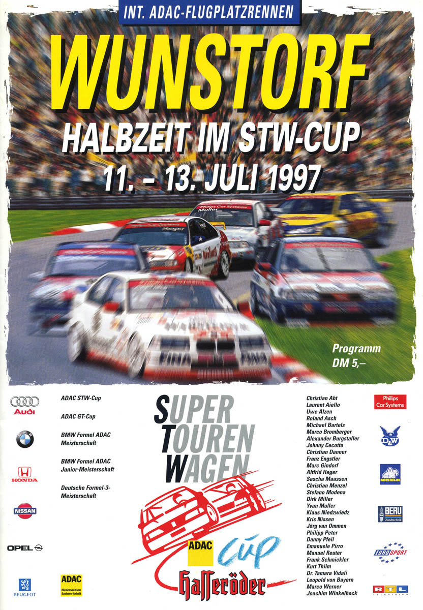 13.07.1997 - Wunstorf 9.+10.Lauf Deutsche Formel-3-Meisterschaft Streckenskizze Programmheft Starterliste Alle Ergebnisse: Nennungsliste Rennen 1 Ergebnis freies Training Ergebnis Zeittraining Original Zeitnahme Bericht Zeittraining Startaufstellung Rennen 1 Ergebnis Rennen 1 Original Zeitnahme Rundentabelle Rennen 1 Bericht Rennen 1 Nennungsliste Rennen 2 Startaufstellung Rennen 2 Ergebnis Rennen 2 Original Zeitnahme Rundentabelle Rennen 2 Bericht Rennen 2