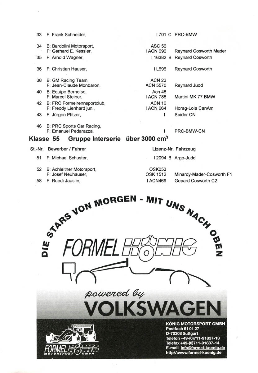 03.11.2001 - Hockenheim Streckenskizze Programmheft Starterliste Alle Ergebnisse: Nennungsliste Ergebnis Zeittraining 1 Original Zeitnahme Ergebnis Zeittraining 2 Gesamtergebnis Zeittraining 1+2 Original Zeitnahme Startaufstellung Ergebnis Rennen Original Zeitnahme