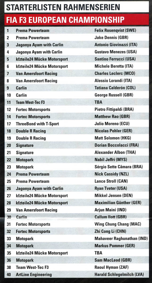 27.09.2015 - Nürburgring 28.+29.+30.Lauf FIA Formula 3 European Championship Streckenskizze Programmheft Starterliste Alle Ergebnisse: Vorbericht Nennungsliste Rennen 1 Ergebnis freies Training 1 Ergebnis freies Training 2 Bericht freies Training Ergebnis Zeittraining 1 Original Zeitnahme Bericht Zeittraining 1 Startaufstellung Rennen 1 Ergebnis Rennen 1 Original Zeitnahme Rundentabelle Rennen 1 Bericht Rennen 1 Nennungsliste Rennen 2 Ergebnis Zeittraining 2 Original Zeitnahme Bericht Zeittraining 2 Startaufstellung Rennen 2 Ergebnis Rennen 2 Original Zeitnahme Rundentabelle Rennen 2 Bericht Rennen 2 Nennungsliste Rennen 3 Ergebnis Zeittraining 2 2nd Original Zeitnahme Startaufstellung Rennen 3 Ergebnis Rennen 3 Original Zeitnahme Rundentabelle Rennen 3 Bericht Rennen 3